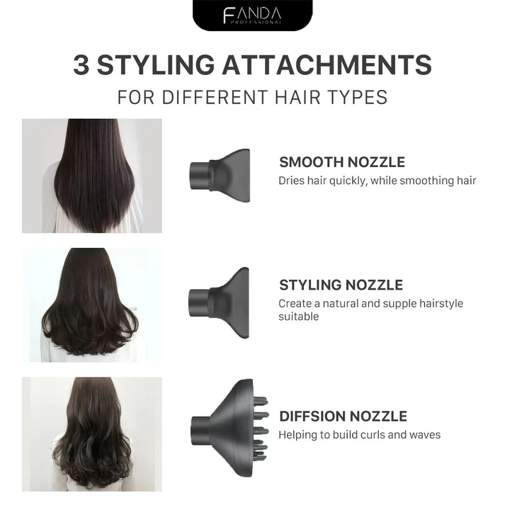 Nozzles : 3 type (Smooth Nozzle, Styling Nozzle, Diffusion Nozzle